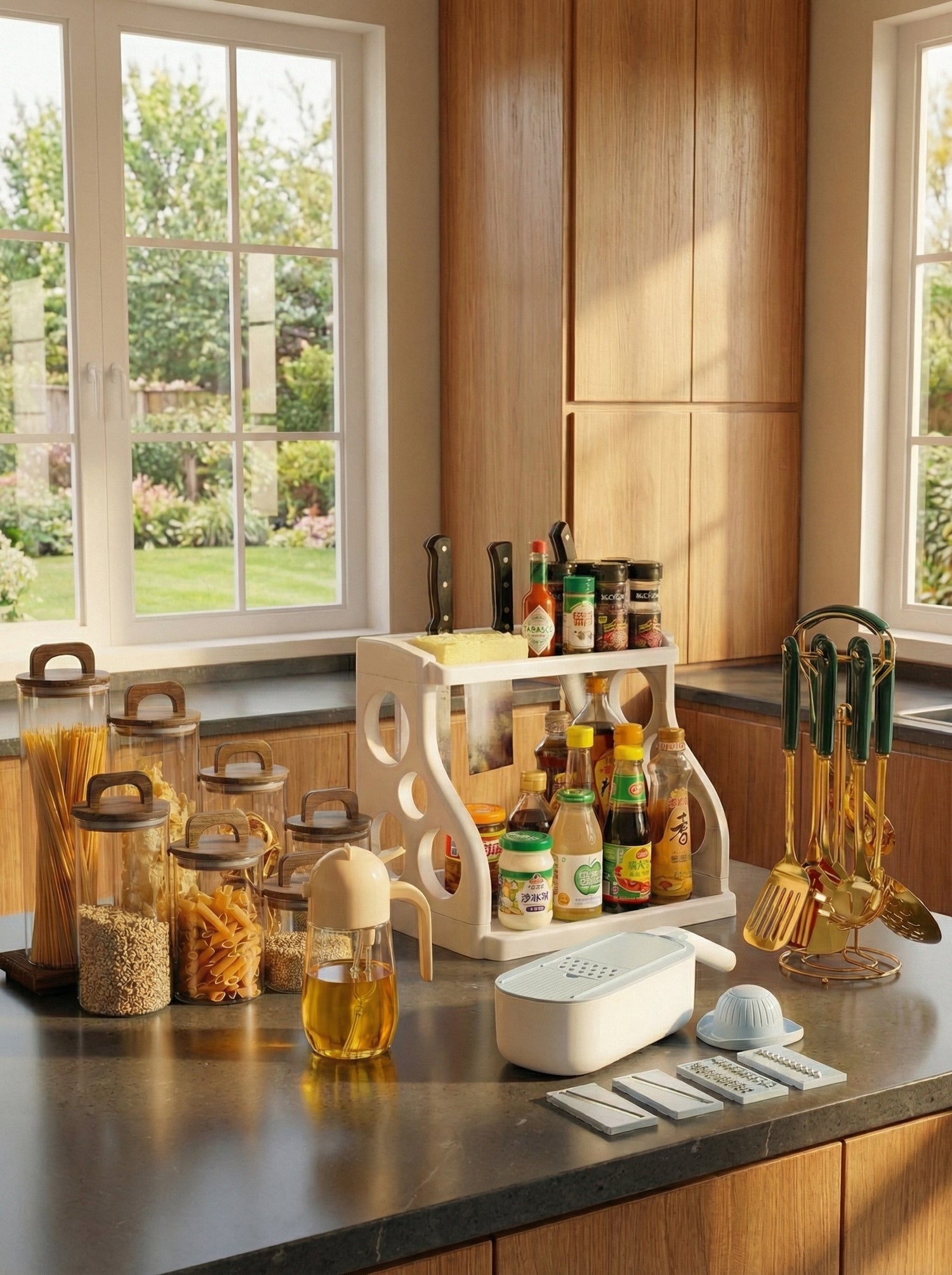 Stainless Steel Kitchen Seasoning Rack With Countertop